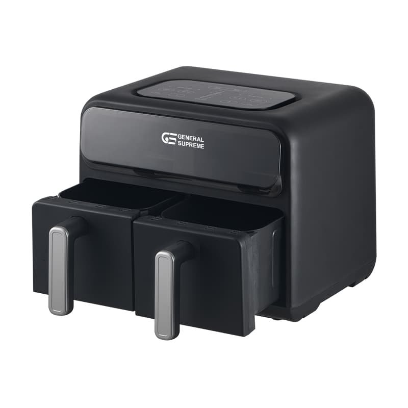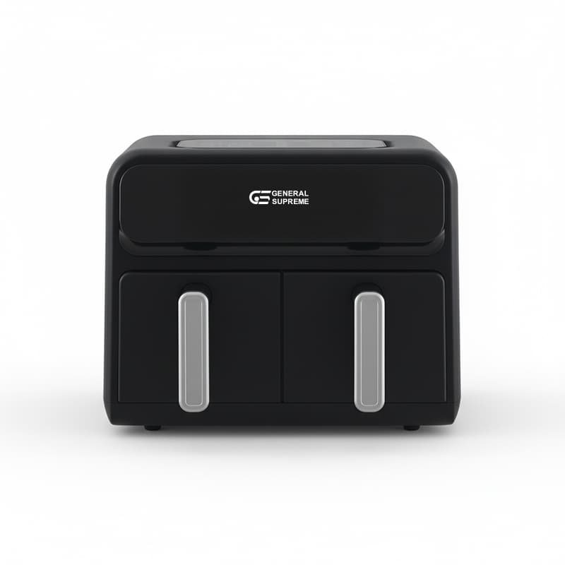 لاية هوائية جنرال سوبريم بسعة 8 لتر بنظام سلتين طبخ مستقلتين (مزدوجة) ومجهزة لشغل 2400 واط طاقة لتسخين الهواء بسرعة وتحقيق طهي متساوٍ وصحي بأقل زيت ممكن. تحتوي على 9 برامج طهي متعددة لتغطية مجموعة واسعة من الأطعمة والطرق، مع خاصية تزامن الإعدادات بحيث تنتهي السلتان من الطهي في نفس الوقت عند استخدامهما معًا، مما يسهل تحضير وجبة كاملة دون حاجة لضبط كل سلة منفصلة. تتميز بشاشة ديجيتال/تحكم رقمي لسهولة اختيار البرنامج، والتحكم في درجة الحرارة والوقت للطهي الدقيق. هذه القلاية مناسبة للعائلات أو للطبخ المتنوع في وقت واحد بفضل تصميمها المزدوج وأدائها القوي.